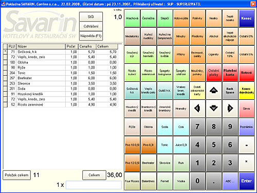 - lze tisknout předběžný účet - pro větší akce, kde si klienti přejí sledovat stav účtu
